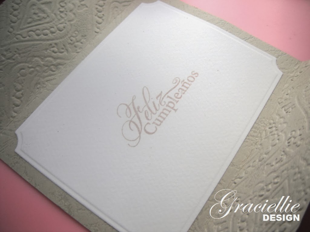 How pretty is this card, huh? This color combination is one I´ve been wanting to use. And for the first time in this blog I´m showing you a card in Spanish! Which is great. It is really hard to find good stamps in Spanish. I found this one after a long search at Stampendous. I love the font also.
