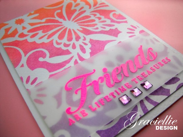 This is so pretty, Graciellie! The stencilling looks fabulous and I love the look of the stamped vellum too!