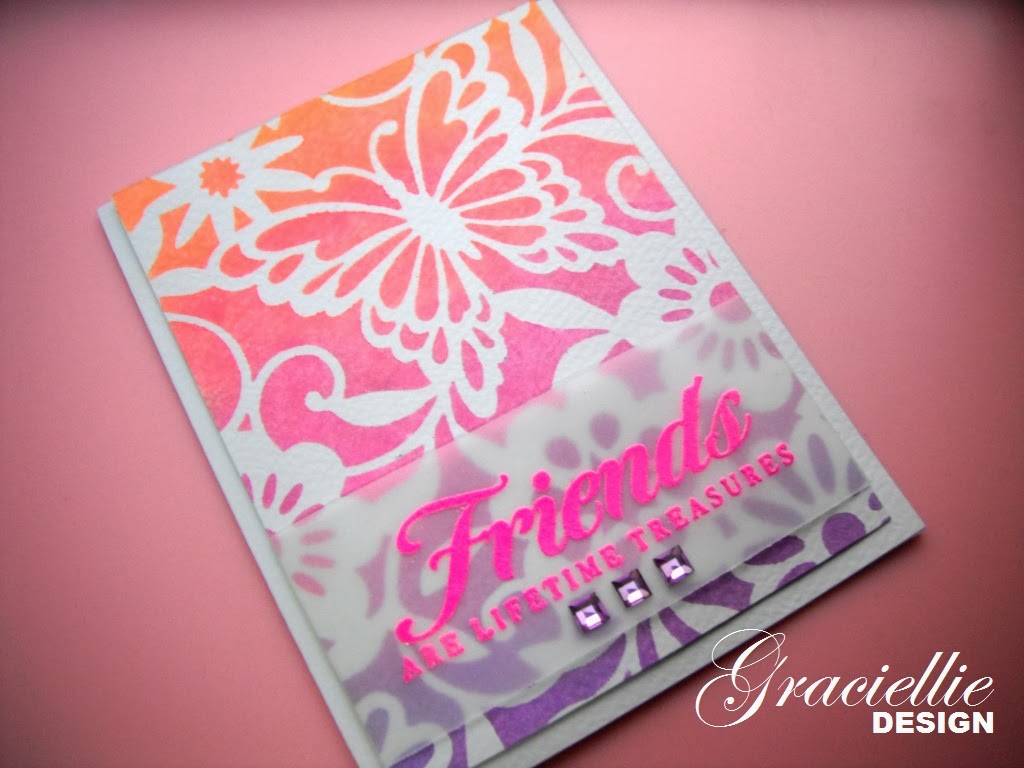 This is so pretty, Graciellie! The stencilling looks fabulous and I love the look of the stamped vellum too!