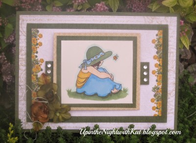 Now I’d like to introduce you to two talented cardmakers who used some of my papers to create some beautiful projects! First is Kathy Clayton from Up in the Night with Kat, who couldn’t wait for the giveaway winner to be announced and decided to purchase immediately Summer Joy paper pack. Thank you Kathy! Here’s the beautiful card Kathy made: