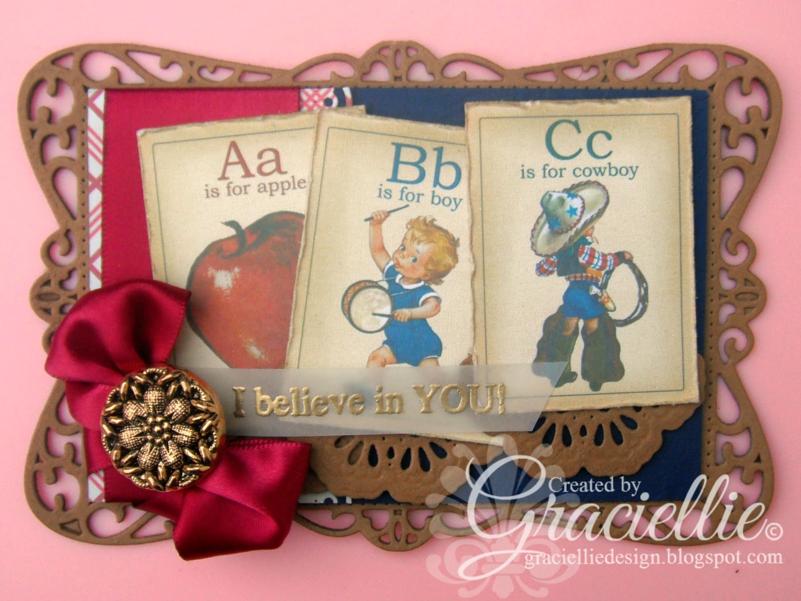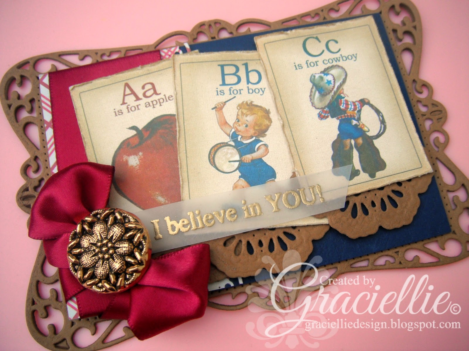 Gracie, once again you have amazed and inspired me so! This card is just too cute…and I am going to scraplift it even though my daughter is 18years old. But since she just started her 1st year of college and her first few classes didn't meet her (or mine) expectations due to class descriptions being completely wrong, I planned on making a card or two or three or even maybe one every week to help encourage her with this new journey in her life… and this will be PERFECT for one of them. So once again, THANKS so much for the INSPIRATION!!!