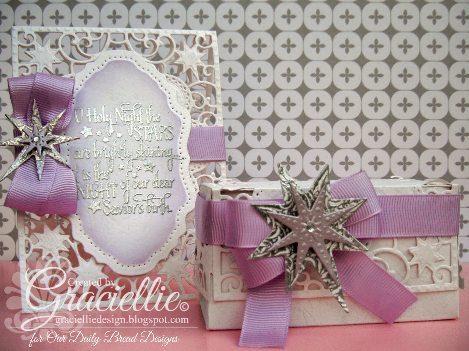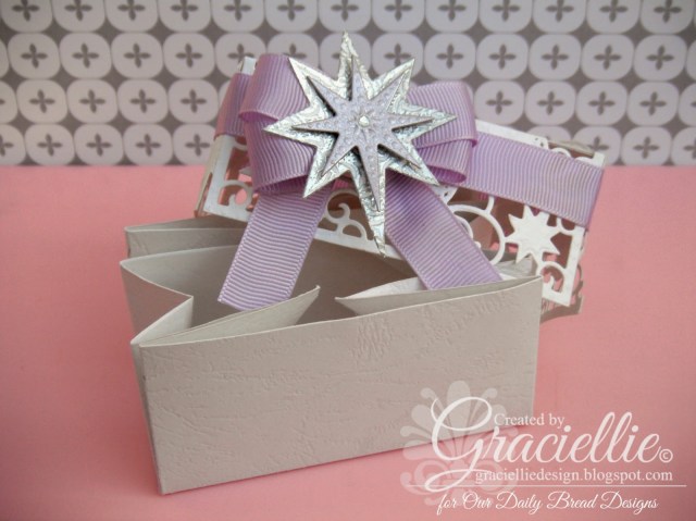 2. So elegant and gorgeous, Gracie! Love the silver embossing with the lilac color, and the fabulous design of your starry box! Thanks so much for sharing your ODBD creations this month!