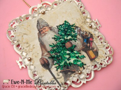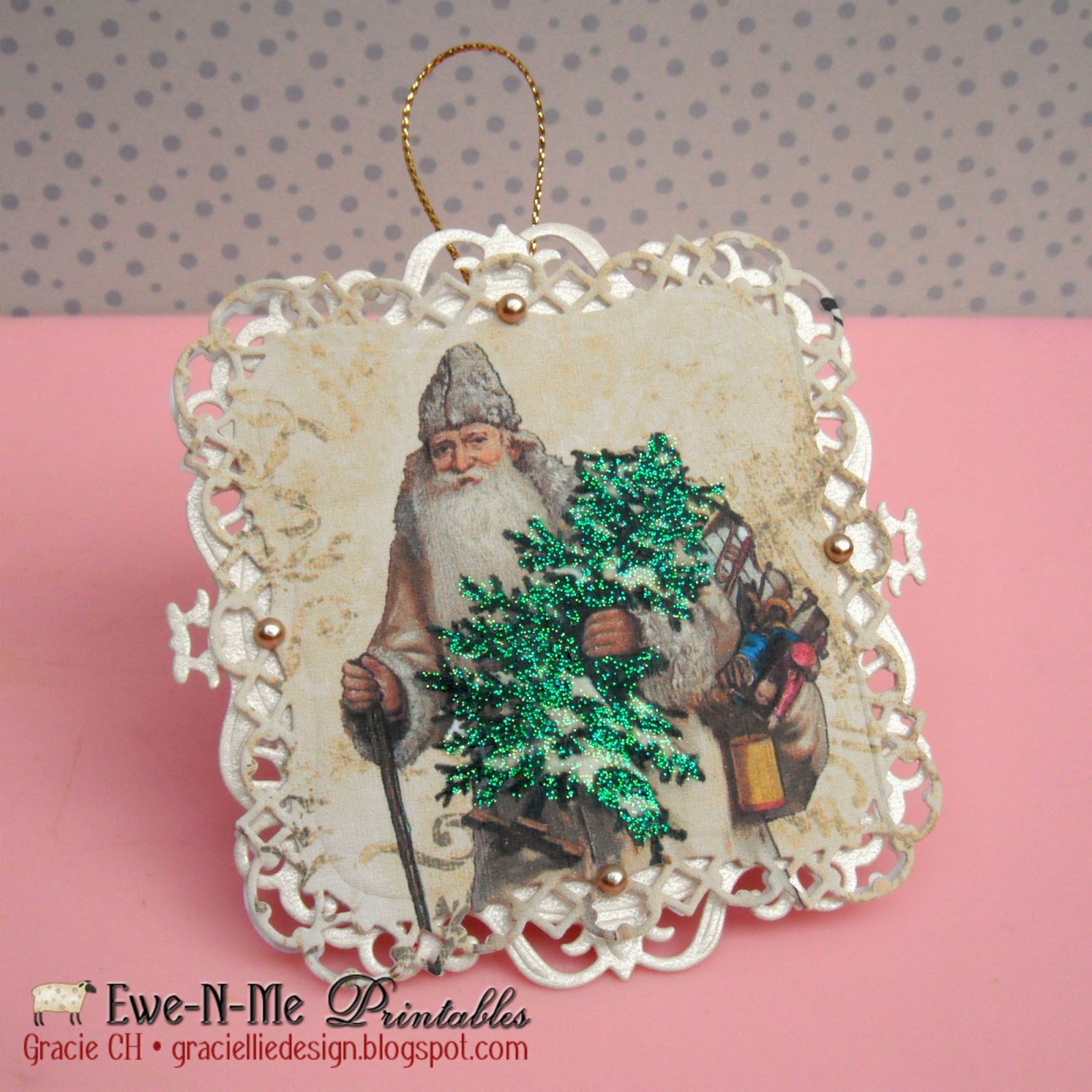 I have a Christmas tag to share with you today, made with Ewe-N-Me Printables’ Cocoa/Treat Envelope – Holiday Kris 101. I love this vintage Santa image.