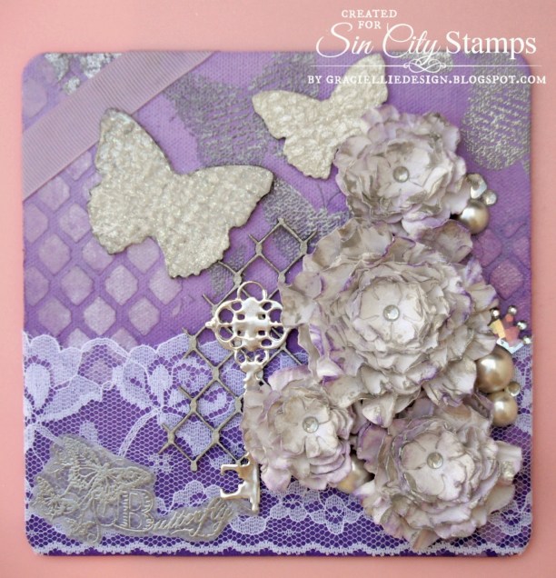 This month Sin City Stamps partnered with Cottonwood Arts. I love CA’s canvases and I’ve enjoyed making projects with them during the last months. Let’s take a look at a set of butterfly canvases I presented separately, but that were designed to go together as a set.