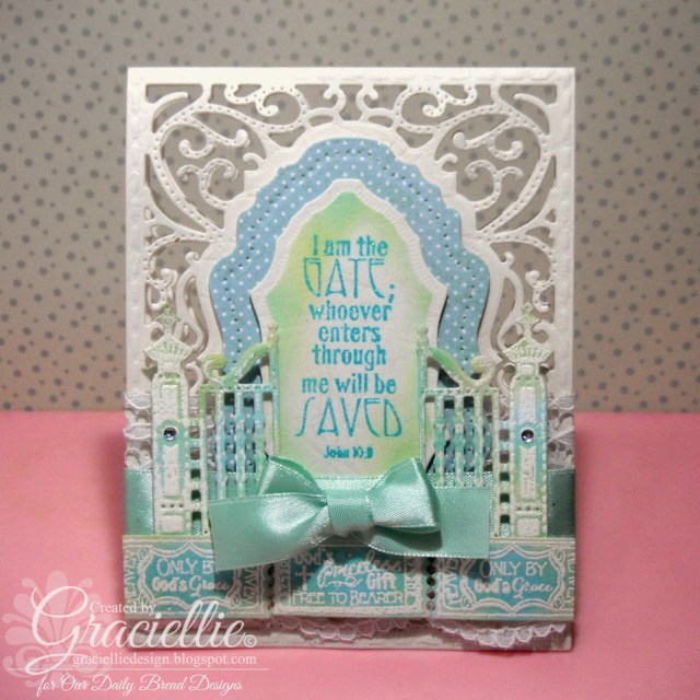 Oh how beautiful Gracie!! I just love colors, the embossed tickets on the bottom and your design with the gate!! Merry Christmas my friend!