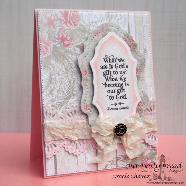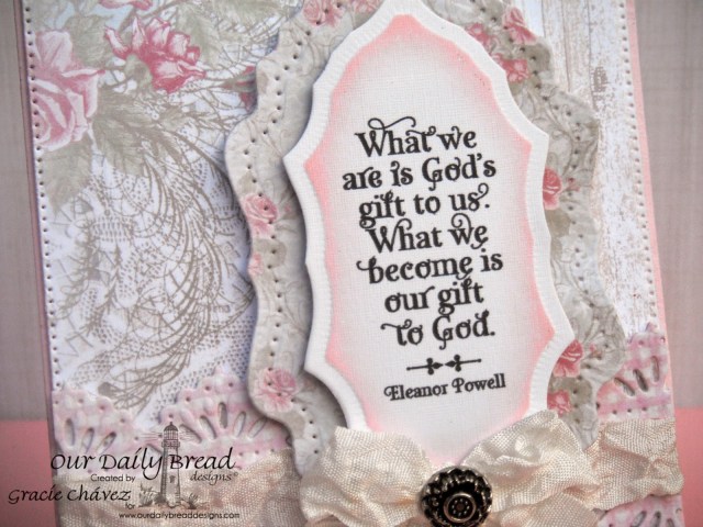 I am sharing a card created with the new God Quotes stamp set, which is being released together with the God Verses set for ODBD’s 7th year anniversary. The stamp sets are so inspiring and beautiful… I particularly love their delicate font. The quotes and verses on these sets are certainly wonderful too!