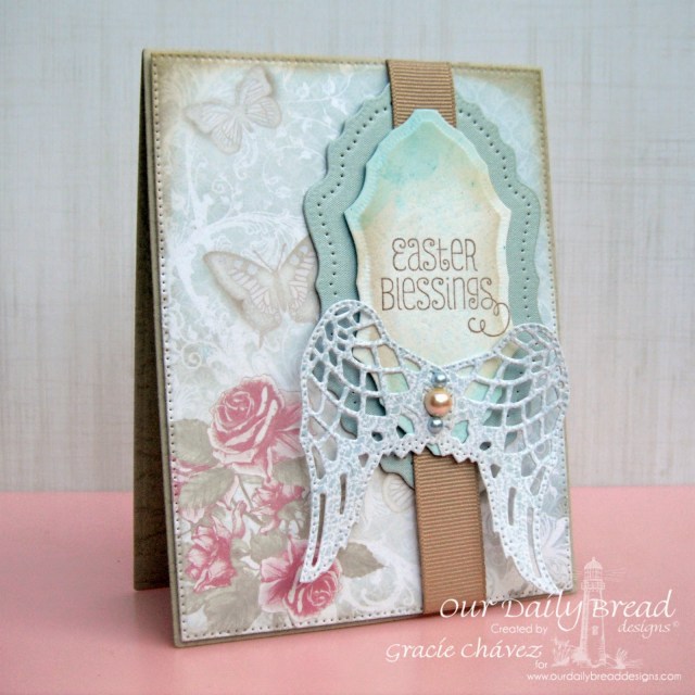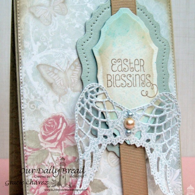This week I am sharing a simple, soft and pretty card for our Religious Spring & Easter Inspiration challenge at Our Daily Bread Designs. This time I chose a beautiful paper from the new Shabby Rose Collection with blue hues to create my card.