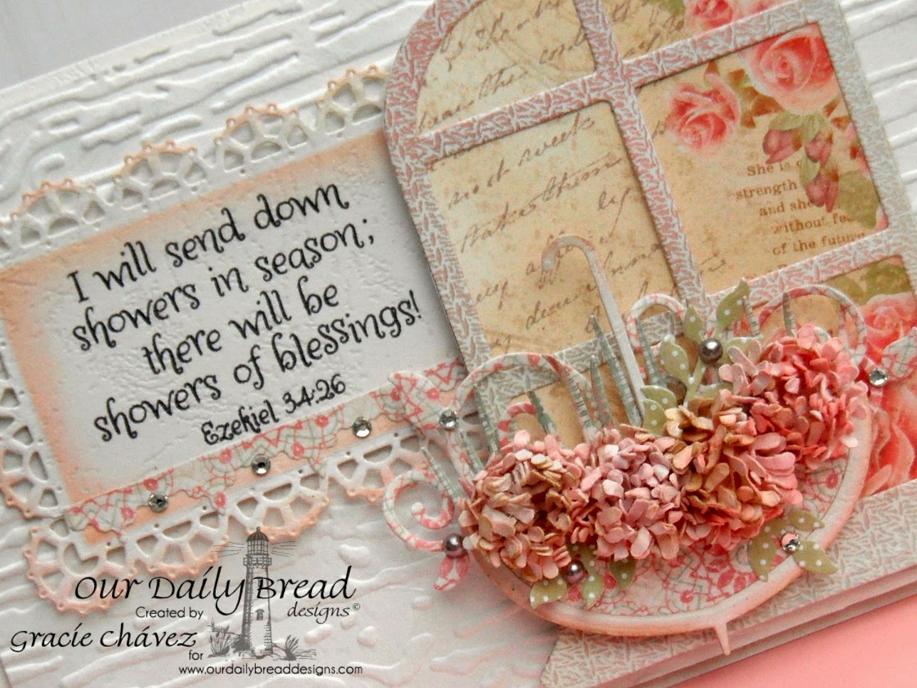 Gracie, I just LOVE your gorgeous flowers in the umbrella!! What a fantastic job you do with paper! Love the pretty trim right under the sentiment as well as the beautiful window!!! So spectacular my friend!
