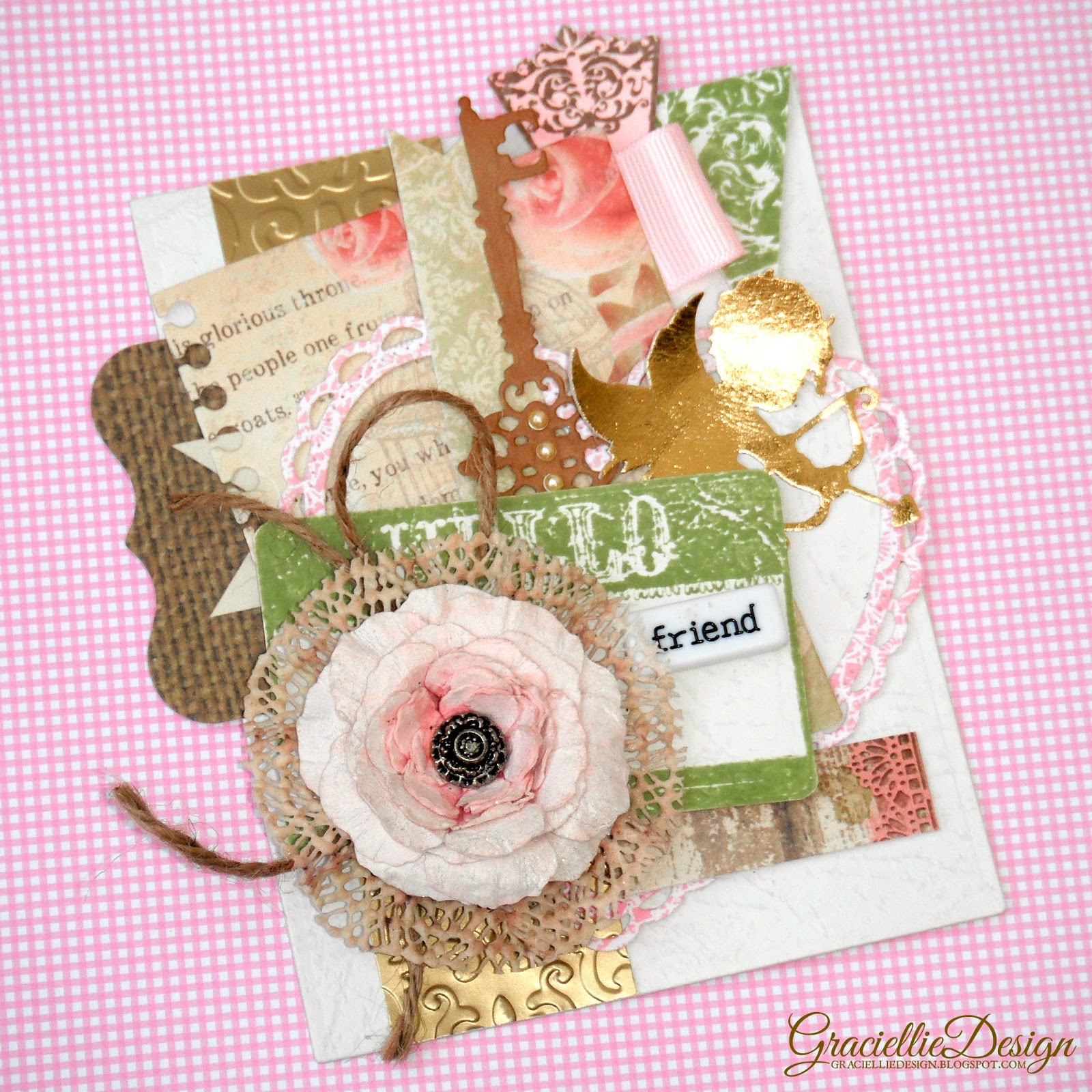 Hi Gracie ~ What a stunning card, full of surprises and fun. The textures and layers are pure loveliness. I absolutely love it. Gold foil paper is fun and I love heat embossing with gold as well. Thanks for sharing!!