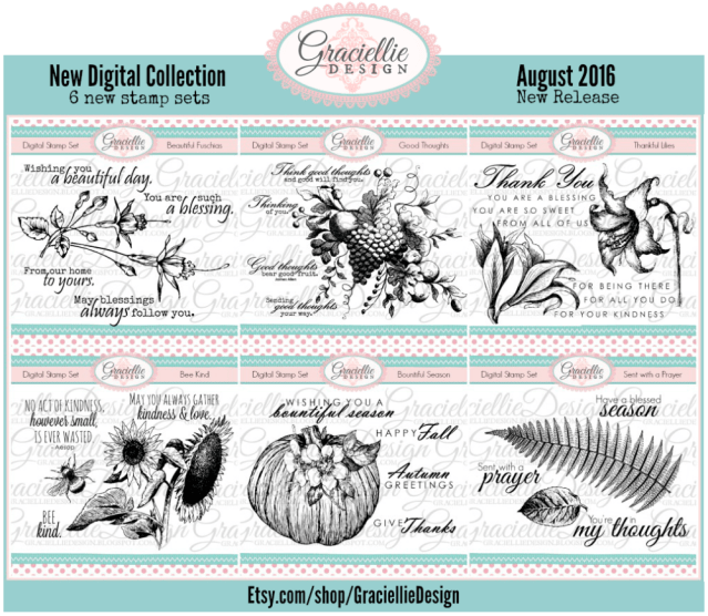 This month we have a NEW release for you at our Graciellie Design stamp shop and this time we are also releasing a Special Edition Digital Paper Pack! So welcome to our celebration! As always you’ll have a chance to get our new stamps before anyone else does, so stay tuned until the end of this post to find out how to win!