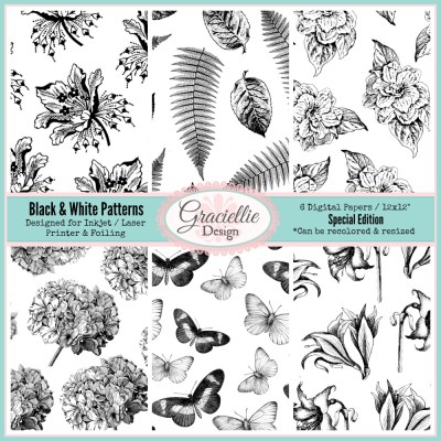 We have 6 NEW STAMP SETS and our NEW Black & White Patterns Digital Paper Pack that we designed to match the new release. These papers are special because they are meant to be used for foiled backgrounds as well as custom colored backgrounds, since it can be edited very easily!