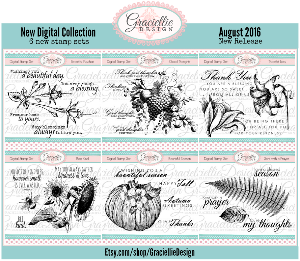This month we have a NEW release for you at our Graciellie Design stamp shop and this time we are also releasing a Special Edition Digital Paper Pack! So welcome to our celebration! As always you’ll have a chance to get our new stamps before anyone else does, so stay tuned until the end of this post to find out how to win!