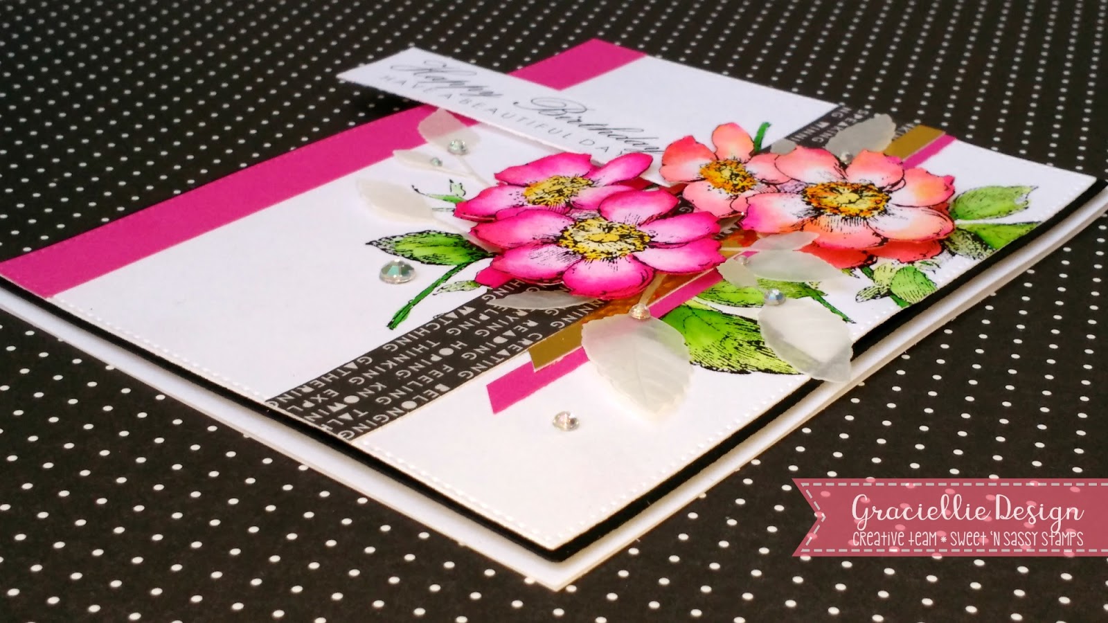 As you may know I am now part of Sweet ‘n Sassy Stamps creative team, but today I’m also sharing a new stamp set I had the honor of creating for the company: Floral GreetingsI had the absolute joy to put together this set for Sweet ‘n Sassy Stamps that includes two beautiful floral images and a collection of greetings for every occasion!