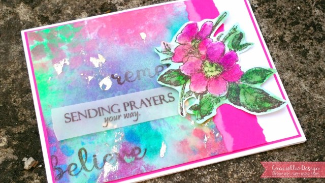 If you follow me on social media you know that lately I have been playing with some mixed media and making fun backgrounds. Today I am sharing card for Sweet ‘n Sassy Stamps using one of those backgrounds I came up with.
