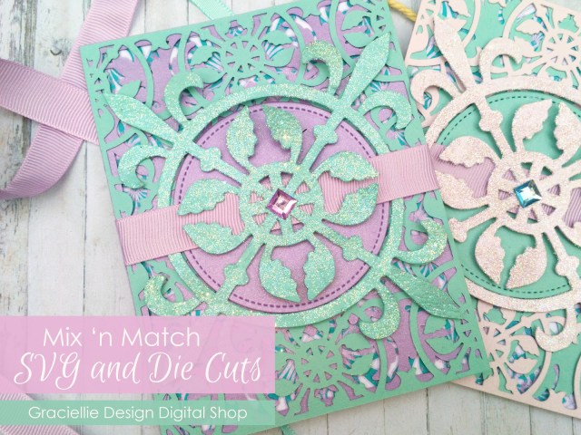 Today is our inspiration blog hop with our GD shop team and there will be so many different project ideas for you! I wanted to share an elegant an easy to make set of notecards in beautiful lilac and aqua. The new digital paper pack Magnolia Dreams has a color palette that allows you to play with a few more colors other than fuscia and teal. You’ll see me mixing and matching SVG cuts, some mine and another from a different designer and also traditional die cuts. Follow me to check out how I made these dreamy cards.