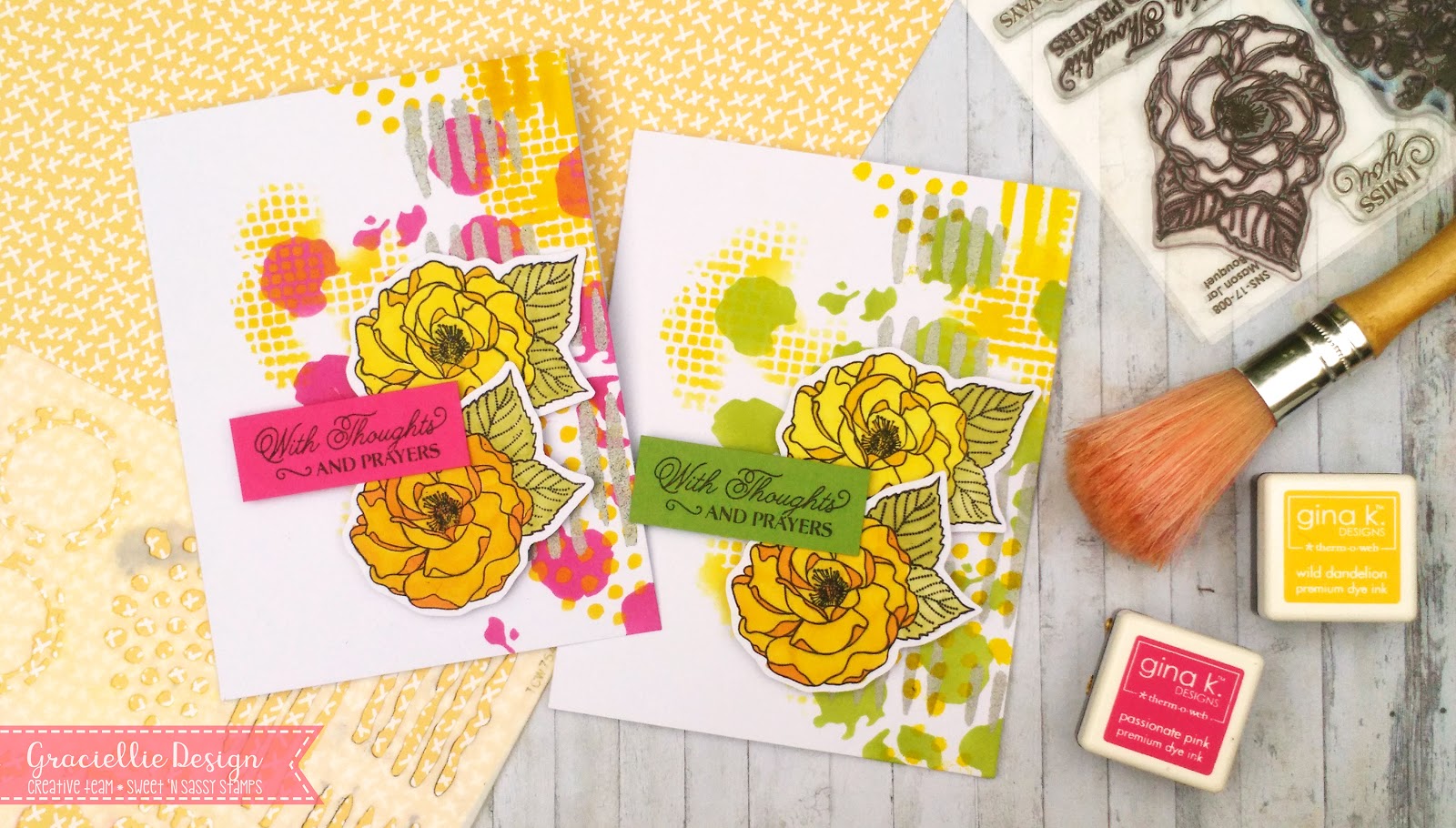 It’s Gracie from Graciellie Design with a new cardmaking idea to share. I’m saying good-bye to Summer with a set of colorful stamped and stenciled cards. I had lots of fun making these so I’m happy to be sharing them with you today!