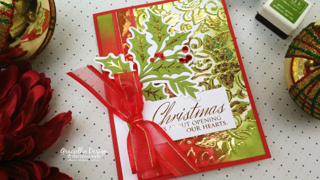 I have a video tutorial showing you how I made today’s card and I’ve added that below. To find out the complete list of supplies used to create this project, make sure you visit Therm O Web’s blog.