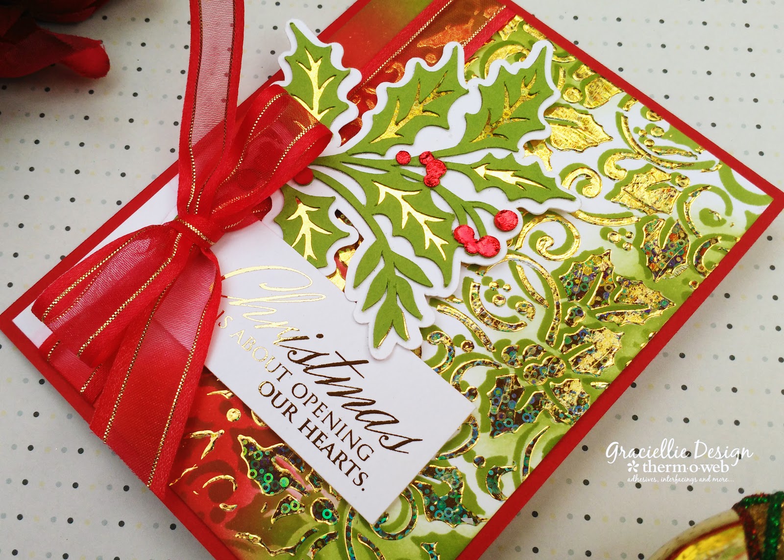 I have a video tutorial showing you how I made today’s card and I’ve added that below. To find out the complete list of supplies used to create this project, make sure you visit Therm O Web’s blog.