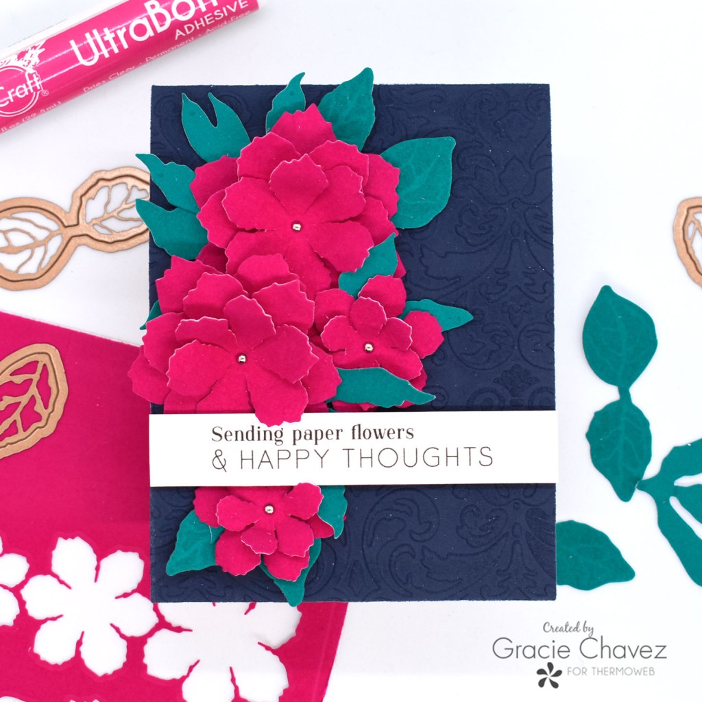 I’m excited to be back with a new video tutorial for Therm O Web after a very long break! I’m so excited to be back. I’m joining Therm O Web’s Pretty Petals Week, which is the theme for the blog. That means there will be many floral inspired projects and tutorials being shared using Deco Foil and Icraft products! It’s my turn to share a new cardmaking tutorial and we’ll love to hear what you think of the techniques featured today using Deco Foil Flock Transfer Sheets.