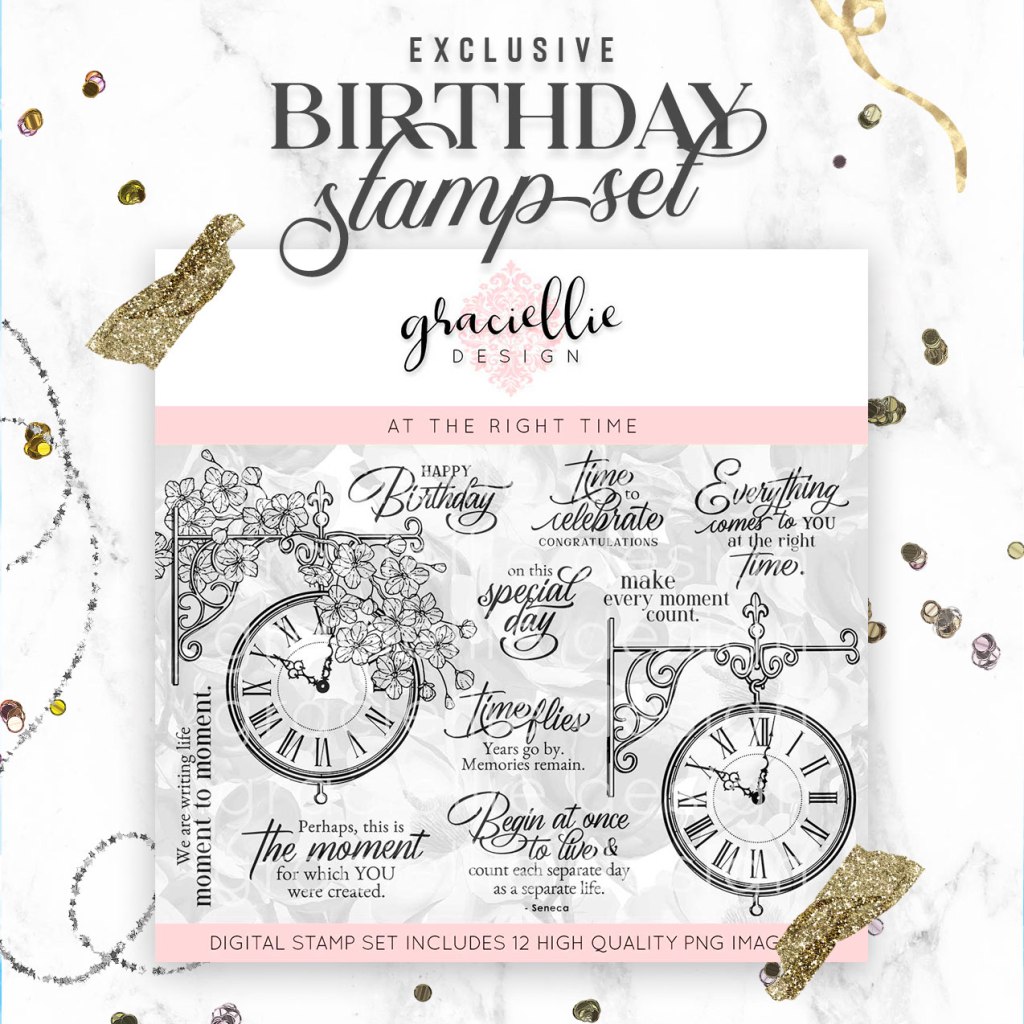 - We’re releasing a special stamp set “At the right Time” simultaneously in digital HERE and in rubber stamps with Unity Stamp Co. HERE.
